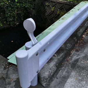 神奈川県厚木市にて、ガードレール支柱の塗装とビームレールの取り付け作業をしました。