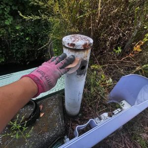 支柱は錆びていたのでしっかりと研磨をして、工業ウレタン塗料での塗装をしました。